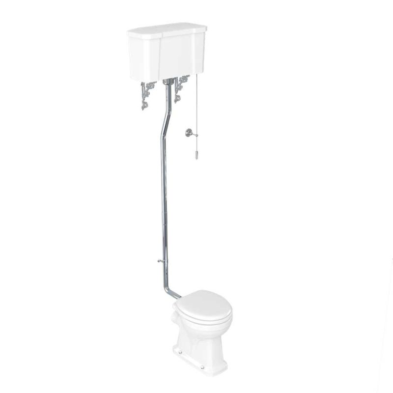 . Add a touch of style to your bathroom with a high level cistern toilet** PLEASE NOTE: Includes pan, cistern, cistern fittings, chrome flushpipe, ornate brackets and pull mechanism. Excludes seat.**