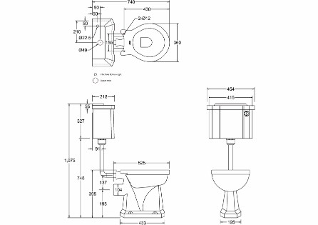 ** PLEASE NOTE: Includes pan, cistern, cistern fittings, chrome flushpipe and button mechanism. Excludes seat.**