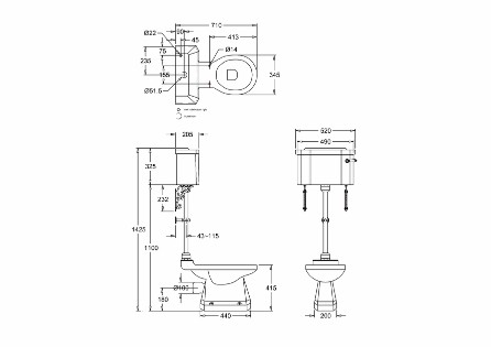 Burlington are totally committed to maintaining the authenticity of each piece of 'Yesterdays Designs' whilst using the most modern methods of manufacture and materials available today. All Burlington WC's exceed the British BS 3402-1969 and European standards EN 31-1999 and each is fired to 1,200 degrees centigrade for a minimum of seventeen hours. Each Burlington WC is carefully and securely packed in lined 2 ply corrugated boxes so as to ensure a perfect product is delivered to your home and is guaranteed for 25 years. All Burlington WC's have Nanoglaze in the bowl. Nanoglaze is a coating that reduces microscopic pores in the ceramic surface making the ceramic smoother as a result less waste sticks to the ceramic making cleaning far easier. All Burlington WC's have box (not open) rims. Whilst this is more difficult to manufacture it does ensure that the water from the flush is correctly spread on the pan internal so that you dont have any dry areas that dont get cleaned with each flush.All Burlington WC's are fitted with water saving dual flush fittings 2 or 4 litres.All Burlington cistern fittings are WRAS (Water Regulations Advisory Scheme) approved.
