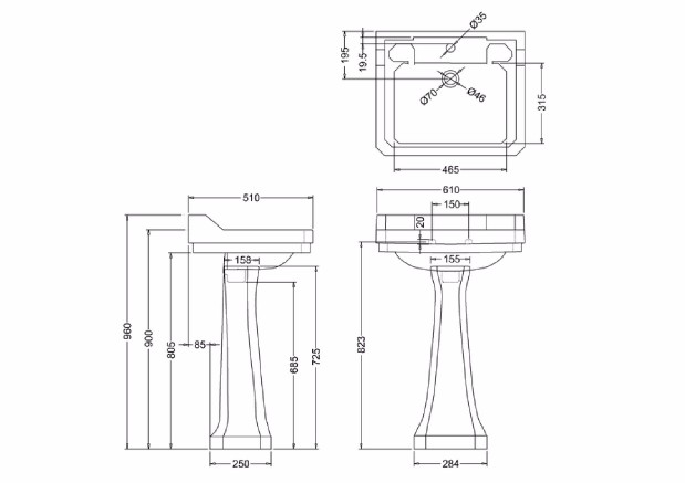 The Burlington Regal Edwardian Large Basin & Pedestal