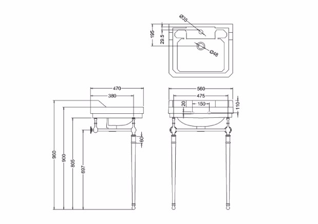 ** PLEASE NOTE: Includes basin and washstand. Excludes taps and basin waste.**