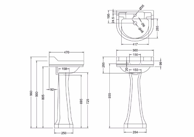 ** PLEASE NOTE: Includes basin and pedestal. Excludes taps and basin waste.**