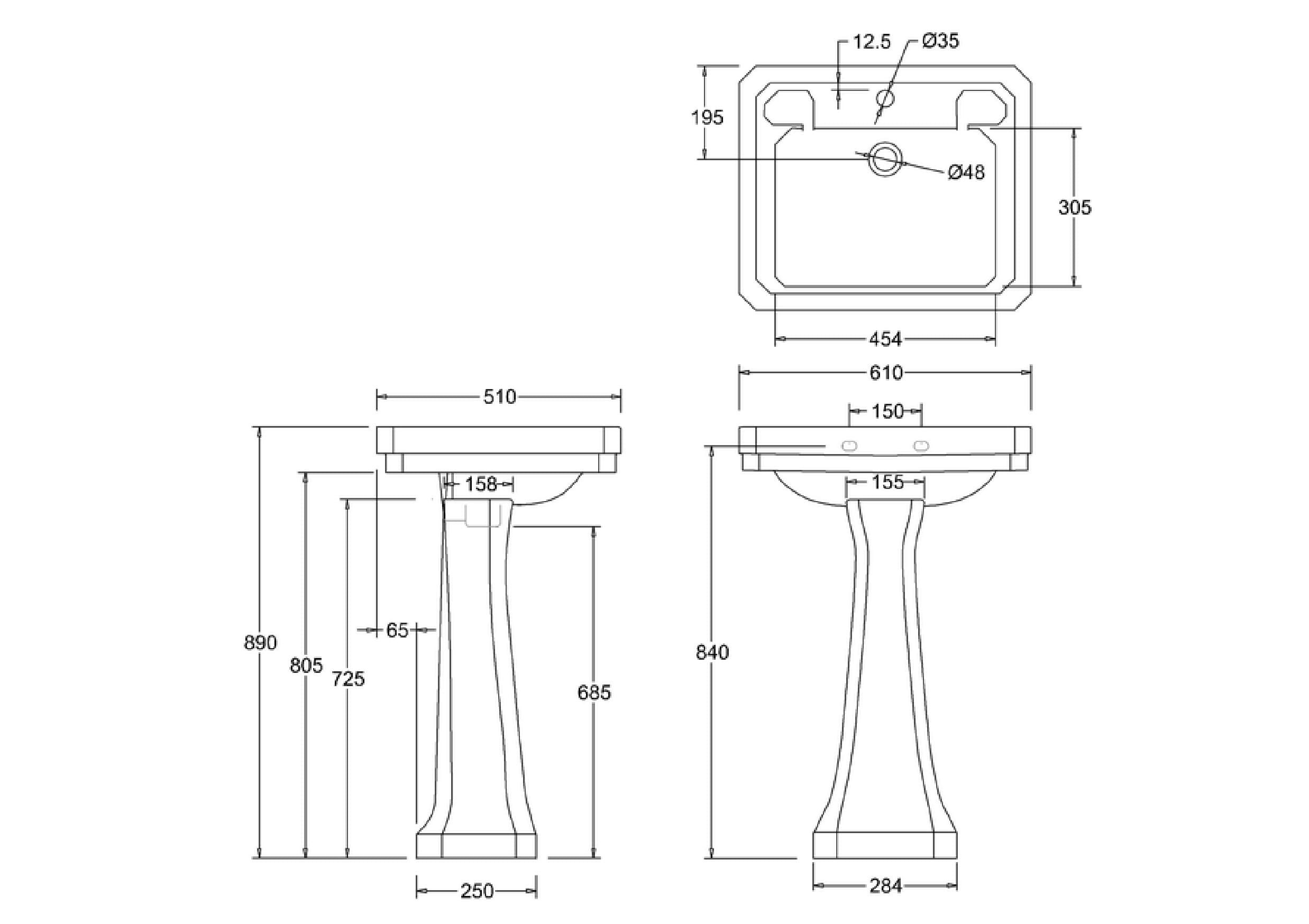 ** PLEASE NOTE: Includes basin and pedestal. Excludes taps and basin waste.**