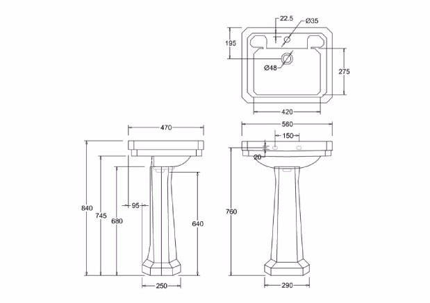 The Burlington Victorian Medium Basin & Pedestal