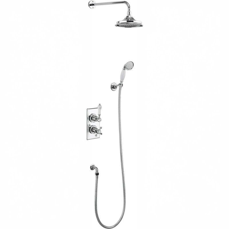 Burlington Trent Thermostatic Two Outlet Concealed Divertor Shower Valve, Fixed Shower Arm, Handset & Holder with Hose and 12 inch Shower Head