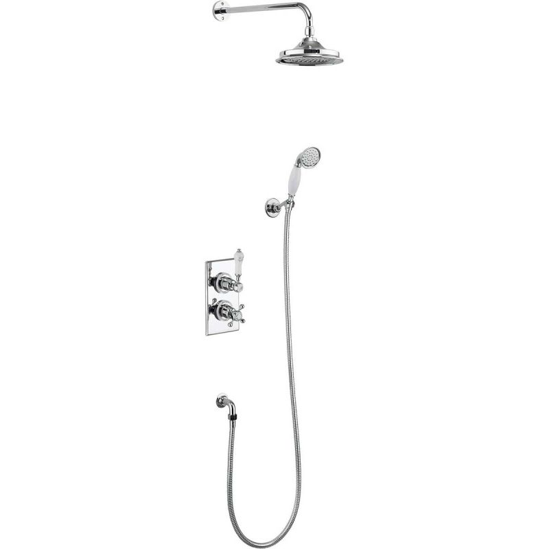 Burlington Trent Thermostatic Two Outlet Concealed Divertor Shower Valve, Fixed Shower Arm, Handset & Holder with Hose and 6 inch Shower Head