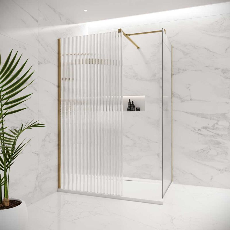 Wharfe Reeded Walk In Shower Enclosure - Brushed Brass