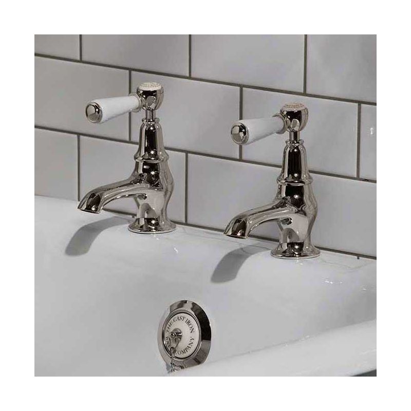 Designed and engineered by our team of specialists, these bath taps are made to the highest possible specification. The taps are available in nickel and Chrome. Each pair of taps is styled with a white lever and German engineered ceramic cartridges with hot and cold indicators.
