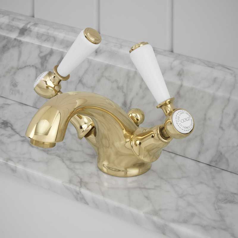 Linton White Lever Monobloc Basin Mixer Timeless Brass