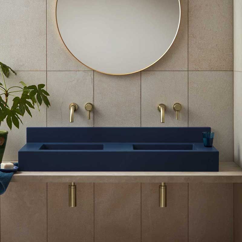 Inspired by the stylish clean lines of The Bauhaus, the Xanti double backplash basin can be wall hung or surface mounted. Available in a wide range of coloured pigments.