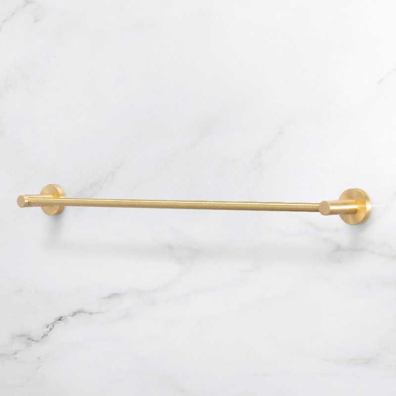 Expertly constructed from solid brass, this premium bathroom towel bar ensures superior strength, durability, and resistance to moisture and corrosion - ideal for long-term use in humid environments. The rail's slim cylindrical form and minimalist brackets provide a clean, streamlined appearance that complements both contemporary and transitional bathroom designs.